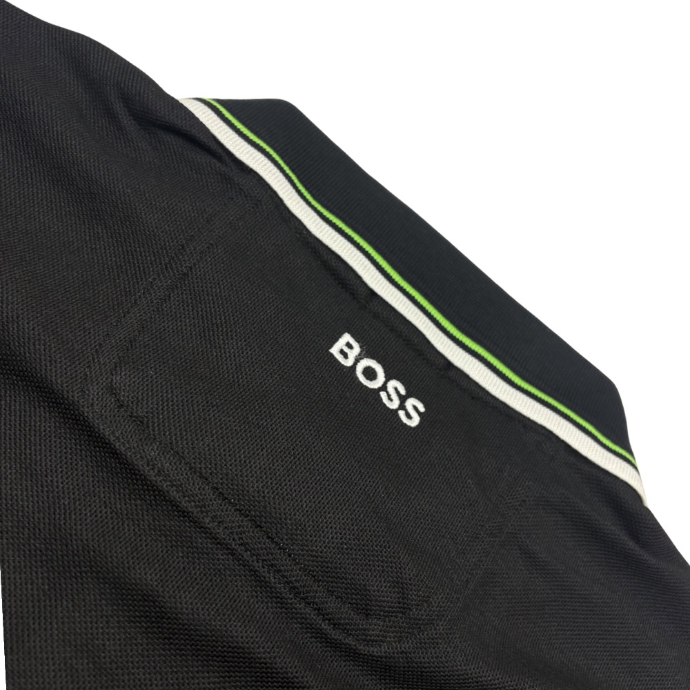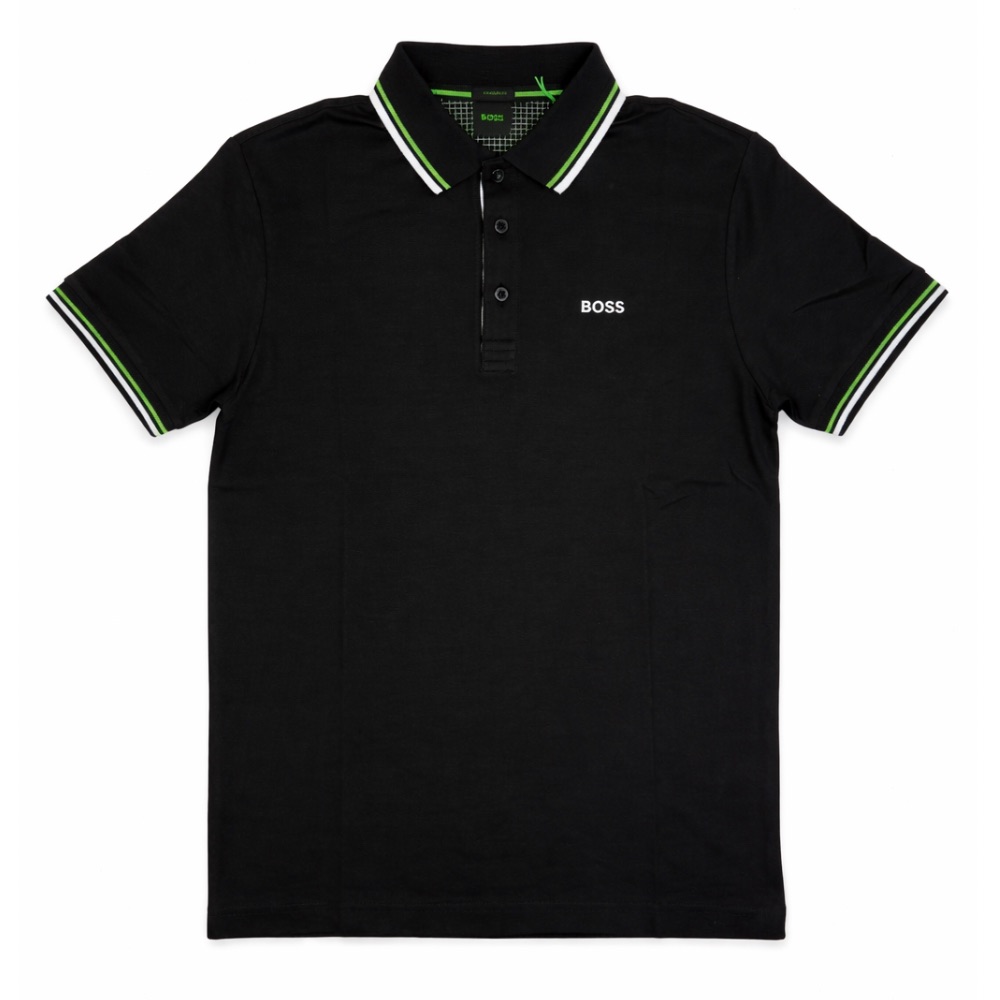 Refresh your wardrobe with the BOSS Paddy Polo in Black, crafted for a clean, modern look in a comfortable regular fit. This short sleeve style features a smart ribbed collar and cuffs, detailed with subtle grey tipping and a refined black and white stitch finish.
